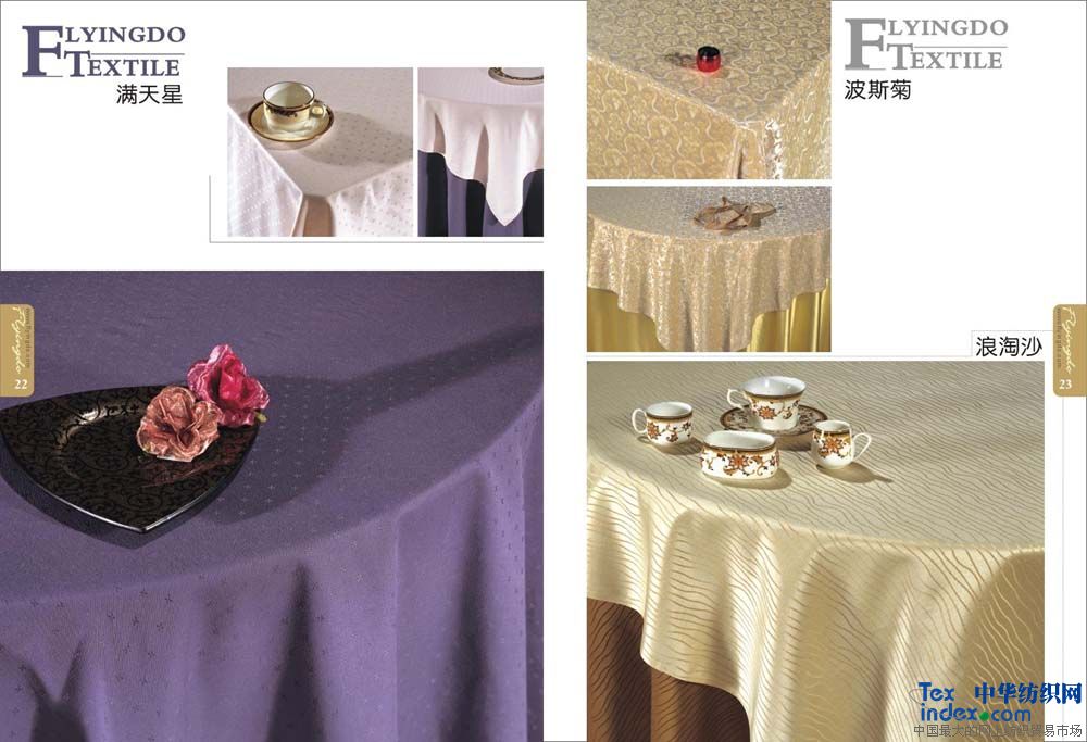 主要銷售客房;平紋 中,高檔【多種顏色40支-60支緞條】床單,被罩,枕套,枕芯,被子,墊被,床裙,床罩,床尾墊,浴簾以及毛巾系列。                                                    餐飲系列;多種顏色中高檔 【純棉  方格 化纖 花色圖案】臺布 口布 臺墊臺裙 臺呢 椅套 印花臺布具有不褪色、耐洗、耐磨、色澤艷麗、平整挺括且使用壽命長的特點,印花臺布規格2.8m,表面繡有花朵圖案作裝飾,造型典雅、大氣,精美時尚,使整體更加美觀,深受廣大消費者的喜愛。白色印花臺布采用優質化纖材料制作而成,款式新穎、物美價廉,是酒店、賓館、家庭等場所的必備用品之一。