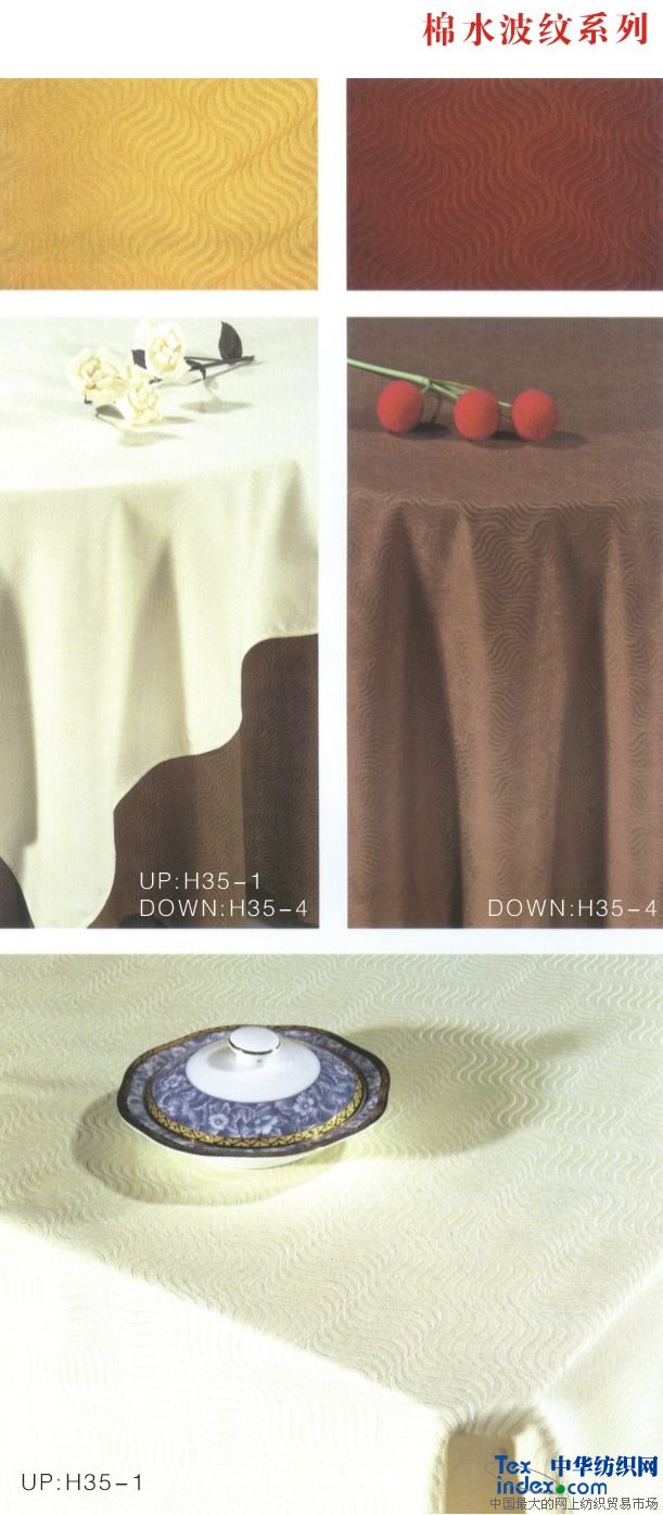 主要銷售客房;平紋 中,高檔【多種顏色40支-60支緞條】床單,被罩,枕套,枕芯,被子,墊被,床裙,床罩,床尾墊,浴簾以及毛巾系列。                                                    餐飲系列;多種顏色中高檔 【純棉  方格 化纖 花色圖案】臺布 口布 臺墊 臺裙 臺呢 椅套 印花臺布具有不褪色、耐洗、耐磨、色澤艷麗、平整挺括且使用壽命長的特點,印花臺布規(guī)格2.8m,表面繡有花朵圖案作裝飾,造型典雅、大氣,精美時尚,使整體更加美觀,深受廣大消費者的喜愛。白色印花臺布采用優(yōu)質化纖材料制作而成,款式新穎、物美價廉,是酒店、賓館、家庭等場所的必備用品之一。