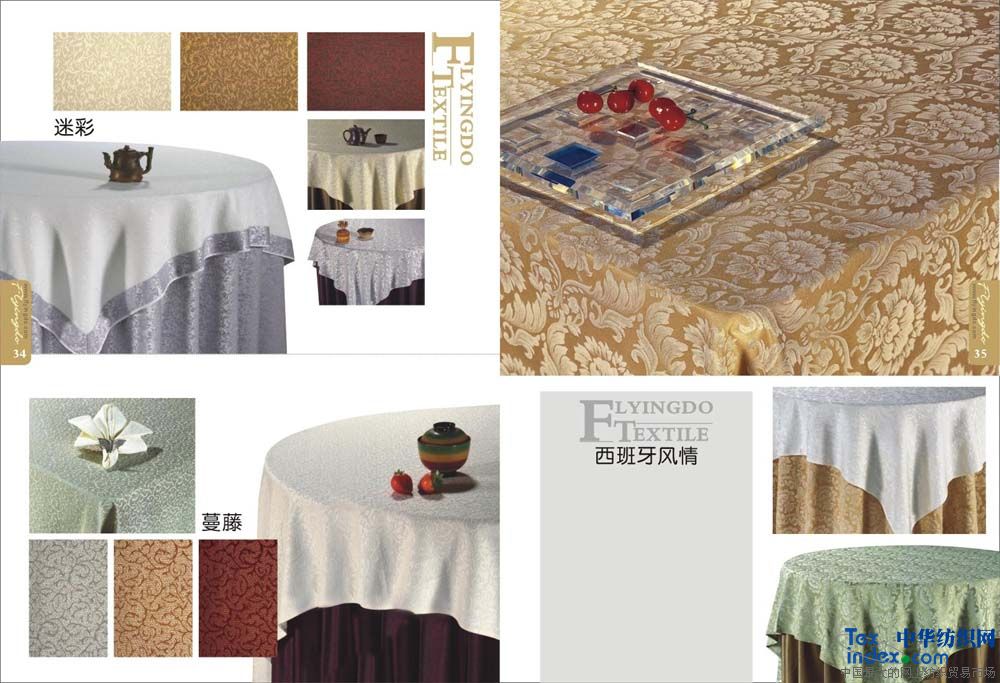主要銷售客房;平紋 中,高檔【多種顏色40支-60支緞條】床單,被罩,枕套,枕芯,被子,墊被,床裙,床罩,床尾墊,浴簾以及毛巾系列。                                                    餐飲系列;多種顏色中高檔 【純棉  方格 化纖 花色圖案】臺(tái)布 口布 臺(tái)墊臺(tái)裙 臺(tái)呢 椅套 印花臺(tái)布具有不褪色、耐洗、耐磨、色澤艷麗、平整挺括且使用壽命長(zhǎng)的特點(diǎn),印花臺(tái)布規(guī)格2.8m,表面繡有花朵圖案作裝飾,造型典雅、大氣,精美時(shí)尚,使整體更加美觀,深受廣大消費(fèi)者的喜愛(ài)。白色印花臺(tái)布采用優(yōu)質(zhì)化纖材料制作而成,款式新穎、物美價(jià)廉,是酒店、賓館、家庭等場(chǎng)所的必備用品之一。