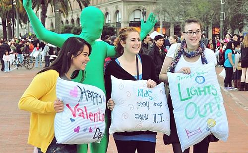 舊金山情人節(jié)上演枕頭大戰(zhàn)