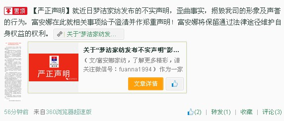 • 富安娜官方就夢潔"假新聞"事件發嚴正聲明